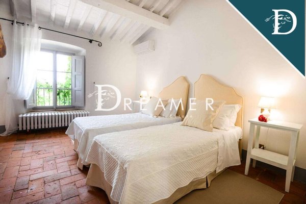 Draußen verfügt der Garten über ein Schwimmbad, das von 5 Hektar Land umgeben ist. Dieses Gebiet umfasst außerdem einen alten Park mit jahrhundertealten Bäumen, einen funktionierenden Olivenhain und einen blühenden Weinberg. Der sorgfältig gepflegte Garten, der sich vor der Villa befindet, bietet einen Panoramablick auf die umliegenden Weinberge und schafft eine bezaubernde Atmosphäre für Momente der Entspannung und Erholung.
