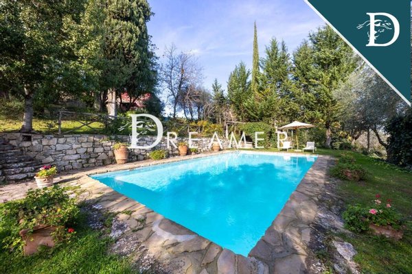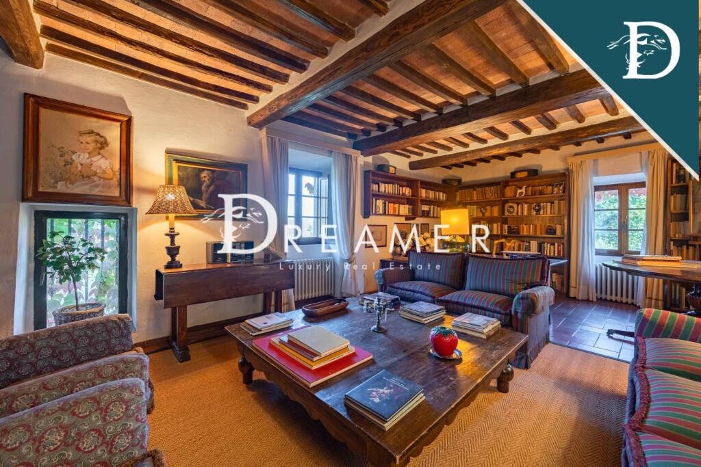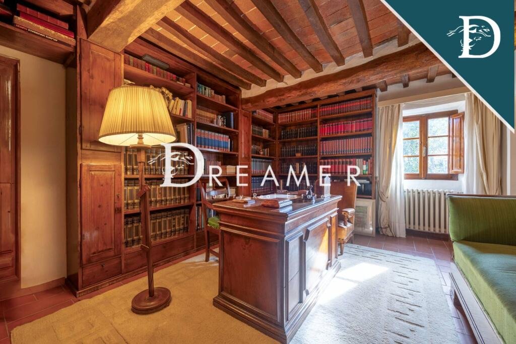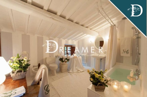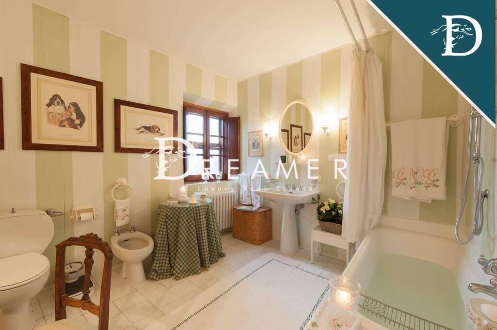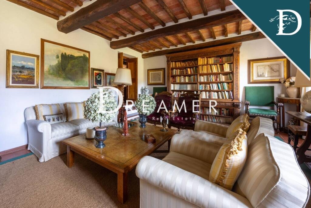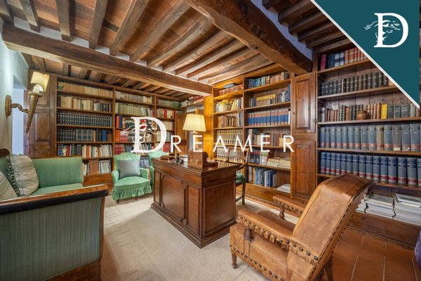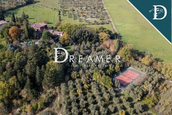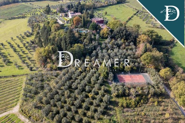 Outside, the property includes a land of about 1.6 ha, of which a part is intended for olive groves and 0.4 hectares of vineyard from which it is possible to obtain the prized Chianti DOCG wine. In the garden there are numerous relaxation areas and a splendid swimming pool with solarium area and pool house. The villa is also equipped with a tennis court, perfect for matches with a panoramic view.