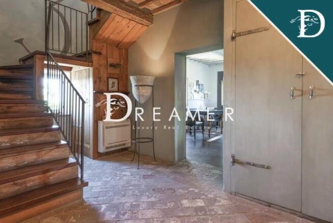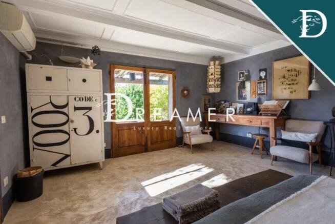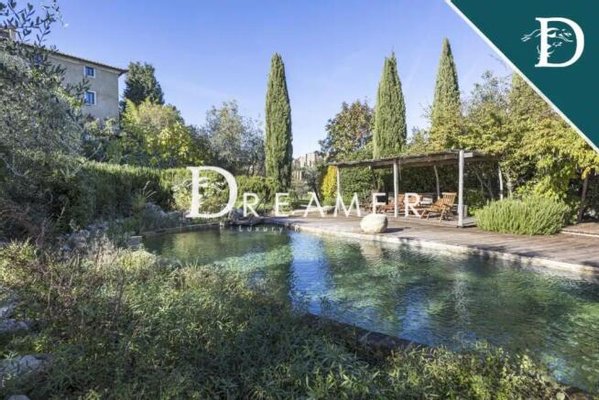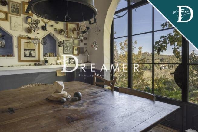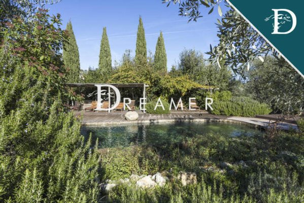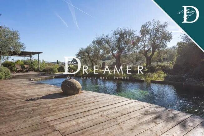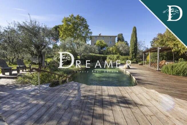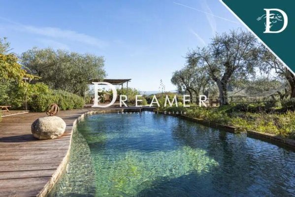 Outside, the garden hosts a beautiful swimming pool, surrounded by 5 hectares of land with secret gardens, vegetable gardens, courtyards, 2 hectares of arable land, 200 olive trees and 100 fruit trees. The property includes a series of outbuildings for agricultural processing.