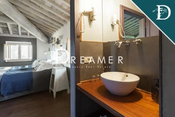 In addition to the imposing main building, a second recently renovated structure features a kitchen and a dining room. Flanked by 2 independent apartments, each elegantly finished and equipped with large spaces. The dining room offers a breathtaking setting, with an enchanting panoramic view, while the apartments offer an oasis of comfort and relaxation, with direct access to the surrounding garden.