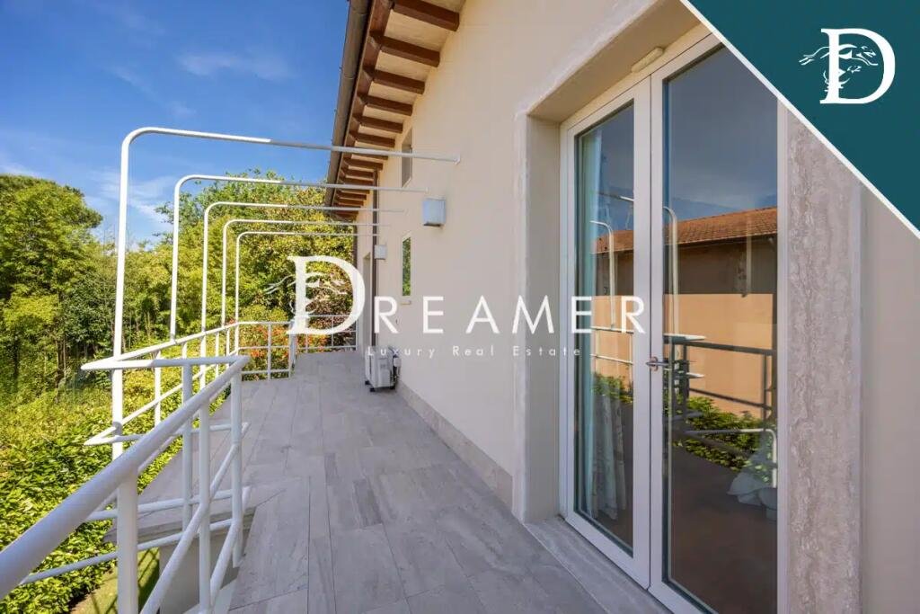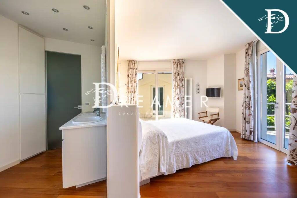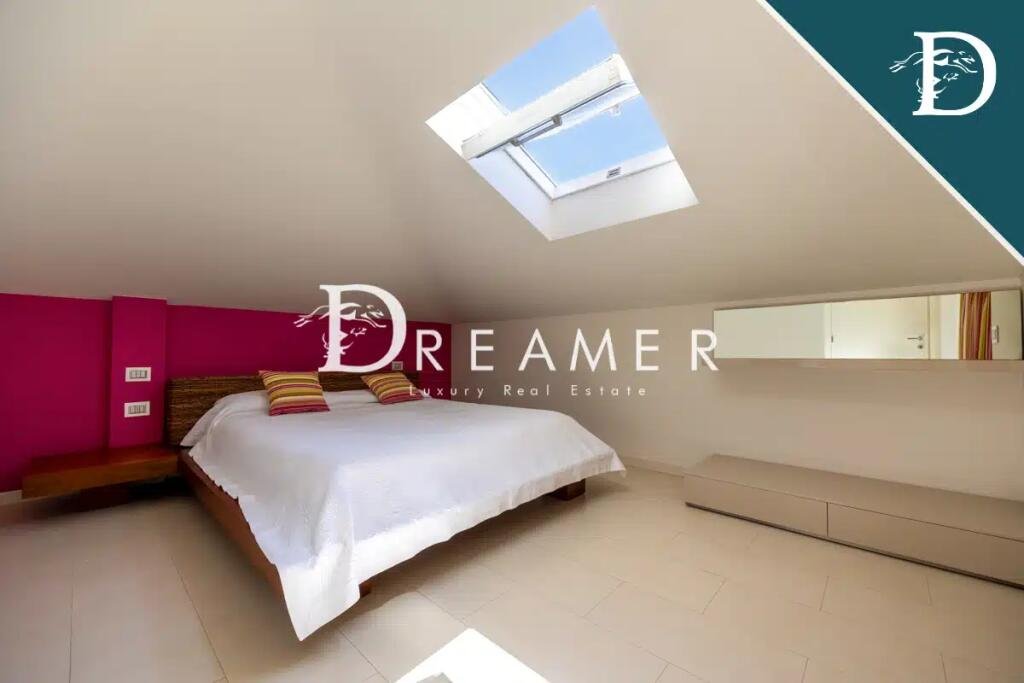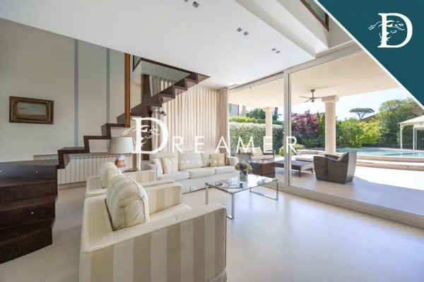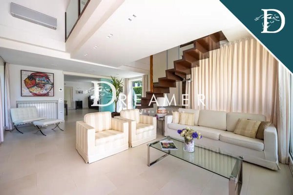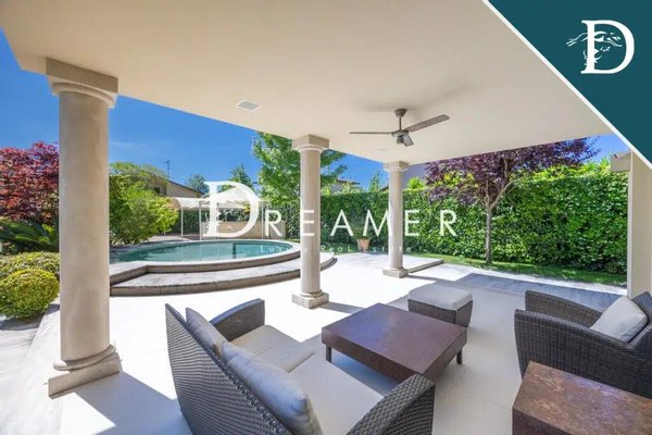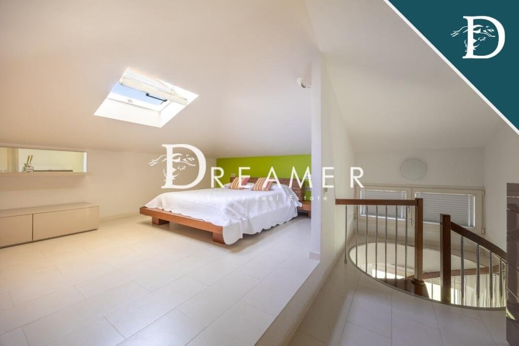 An elegant marble staircase leads to the first floor, where the sleeping area is developed with 2 large double bedrooms with parquet and ensuite bathroom, one of which with a comfortable and large walk-in closet. Both bedrooms also allow access to a large balcony overlooking the garden. An additional attic area overlooks the main living room and adds versatility as a lounge or relaxation space. The second floor houses 2 more bright bedrooms with bathrooms. This exclusive property for sale is embellished with a stunning contemporary design. Its spacious and bright interiors offer the residence a refined and modern atmosphere.