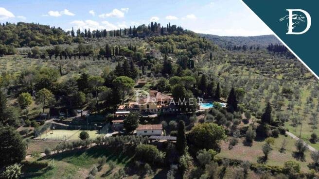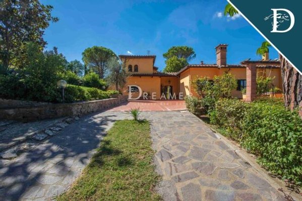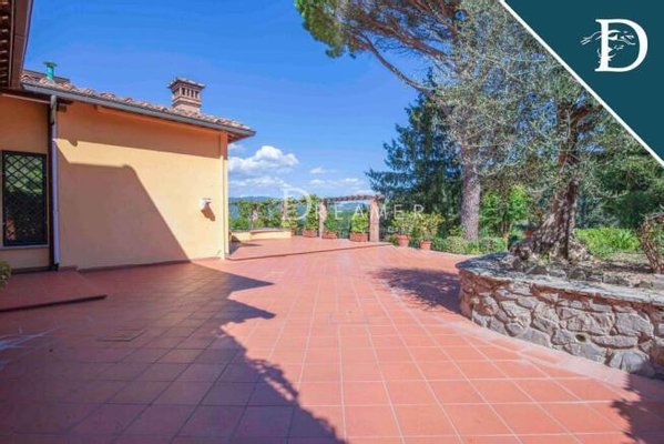 The property, free on four sides, extends for over 700 square meters on three levels for a total of 10 bedrooms and 6 bathrooms, as well as two kitchens, large lounges and a cinema room. This villa is located in a predominant position on the hills, in a private setting, immersed in the green of the Tuscan countryside.