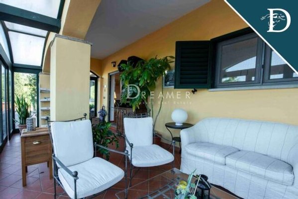 The property has wide open spaces, such as terraces and loggias and an equipped swimming pool with panoramic views and a tennis court.