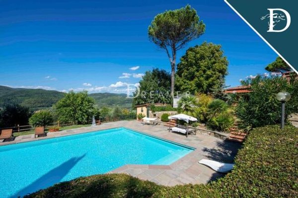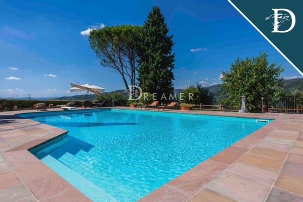 Stately Villa with pool and view for sale, in the heart of the Tuscan countryside, a few kilometers from the historic center of Florence.