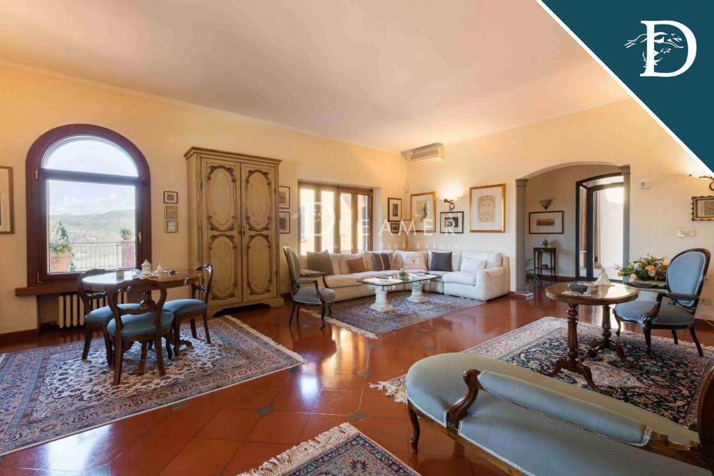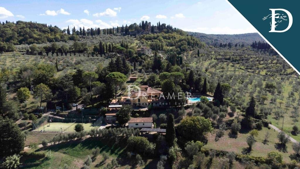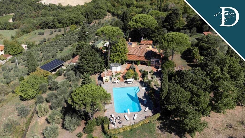 Stately Villa with pool and view for sale, in the heart of the Tuscan countryside, a few kilometers from the historic center of Florence.