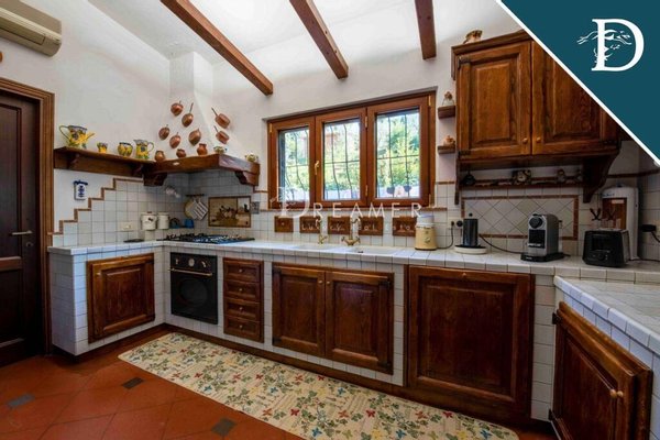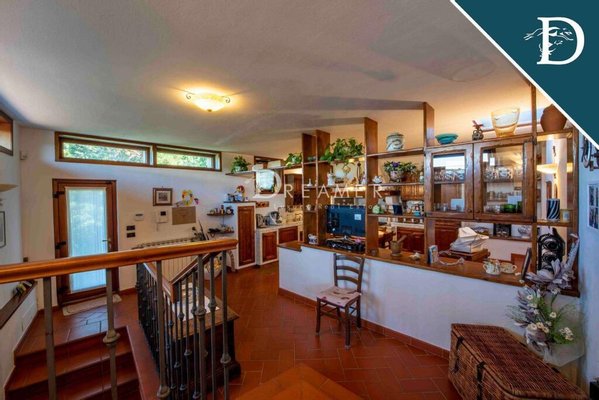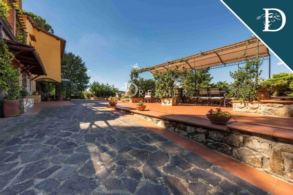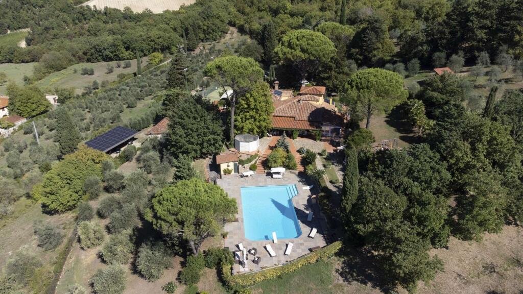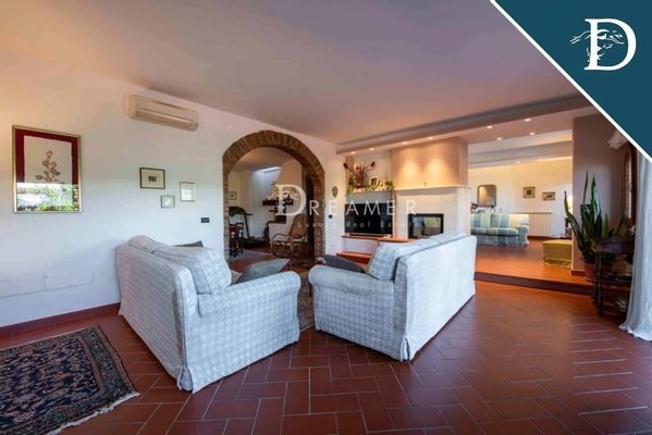 The property, free on four sides, extends for over 700 square meters on three levels for a total of 10 bedrooms and 6 bathrooms, as well as two kitchens, large lounges and a cinema room. This villa is located in a predominant position on the hills, in a private setting, immersed in the green of the Tuscan countryside.
