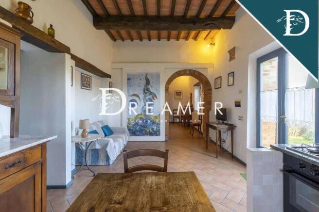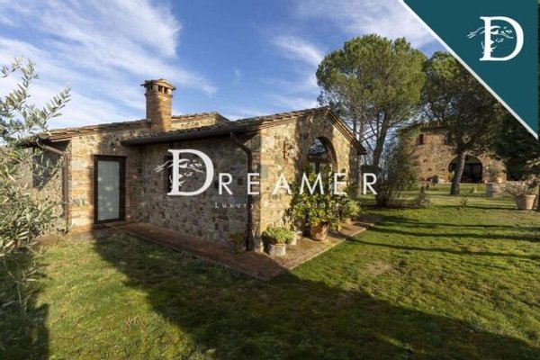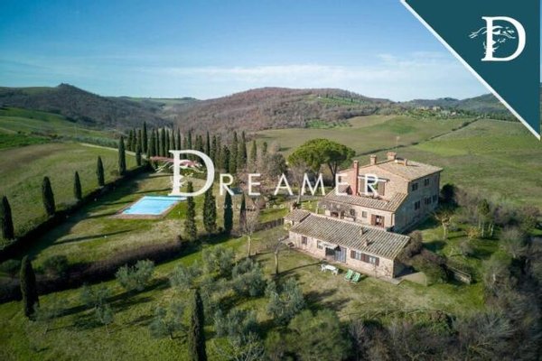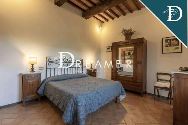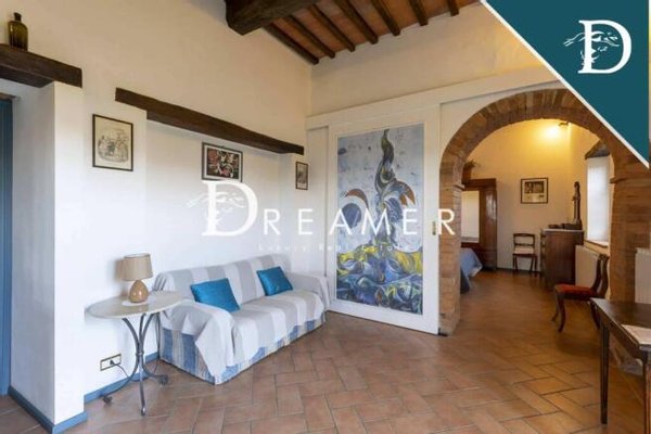 The estate comprises a main villa, an outbuilding and a farm shed for a total area of approximately 600 m2, with 7 bedrooms and 5 bathrooms. The original facades and tiles stand out among the green of the surrounding hills. Elements such as its ancient loggia, sturdy solid wood doors, as well as pleasant pergolas with climbing plants give the complex a refined and elegant appearance. Despite its purely rural origins. Furthermore, the interiors also feature elements typical of Tuscan farmhouses. Such as stone floors and walls, vaulted ceilings, working period fireplaces, exposed beams and arched openings with original terracotta bricks.