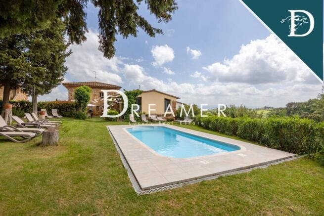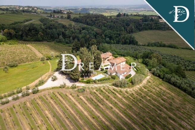 Outside, surrounded by a large garden, there is a large swimming pool from which you can glimpse the famous towers of San Gimignano. The setting is ideal for enjoying unforgettable moments of relaxation in the Tuscan countryside. The property is surrounded by 21 ha of land, 15 of which are vineyards producing Vernaccia wine and 3 ha of olive groves producing high-quality Tuscan olive oil.