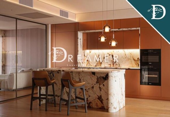 Das Erdgeschoss verfügt über einen eleganten, offenen Wohnbereich, der durch einen Balkon mit Blick auf die Hauptallee und eine Essküche mit direktem Zugang zu einer 13 m² großen Terrasse bereichert wird, perfekt für das Essen im Freien. Ein Gästebad und ein Doppelzimmer mit eigenem Bad vervollständigen den Boden.