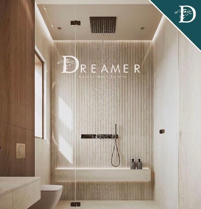 Das Erdgeschoss verfügt über einen eleganten, offenen Wohnbereich, der durch einen Balkon mit Blick auf die Hauptallee und eine Essküche mit direktem Zugang zu einer 13 m² großen Terrasse bereichert wird, perfekt für das Essen im Freien. Ein Gästebad und ein Doppelzimmer mit eigenem Bad vervollständigen den Boden.