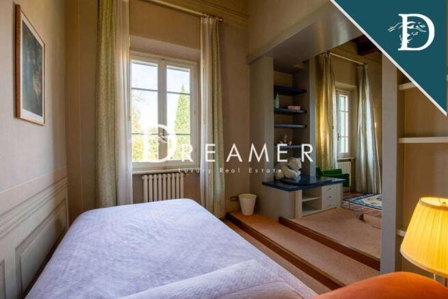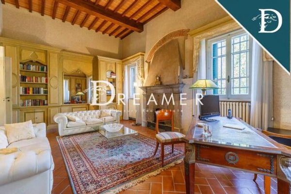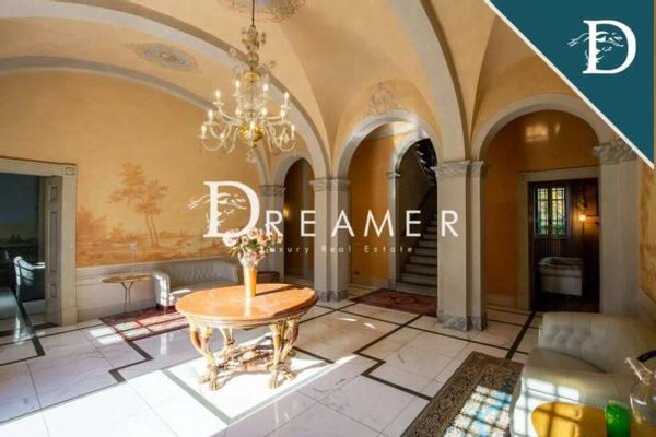 The prestigious historic villa is spread over three levels. The ground floor features two enchanting living rooms, a dining room, a large equipped eat-in kitchen, a bathroom, and a study. On the first floor is the sleeping area with the master bedroom, a recreation area with a wonderful billiards table, a bar, a large living room, a study, and another bedroom with bathroom.