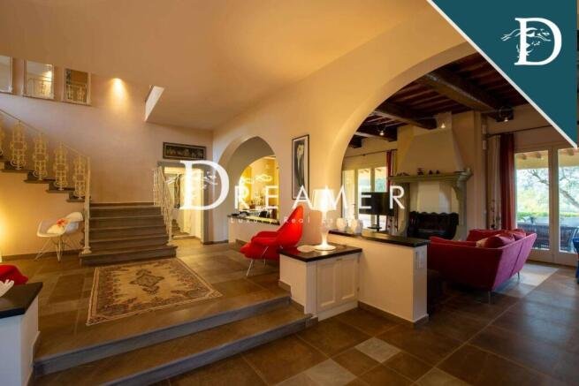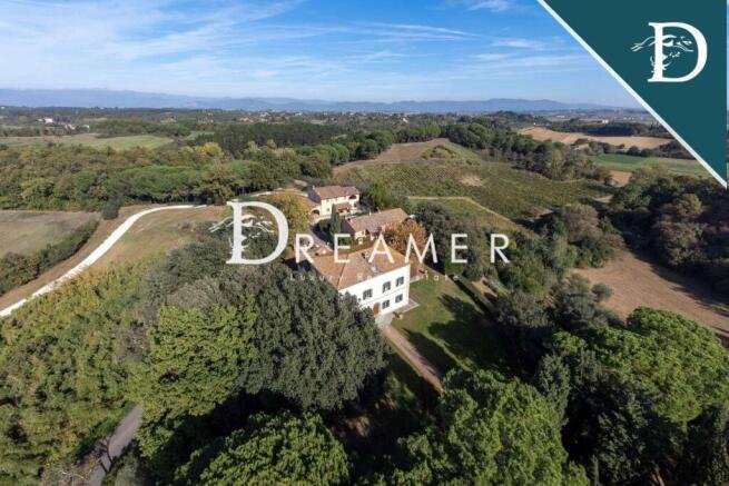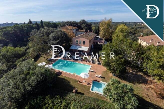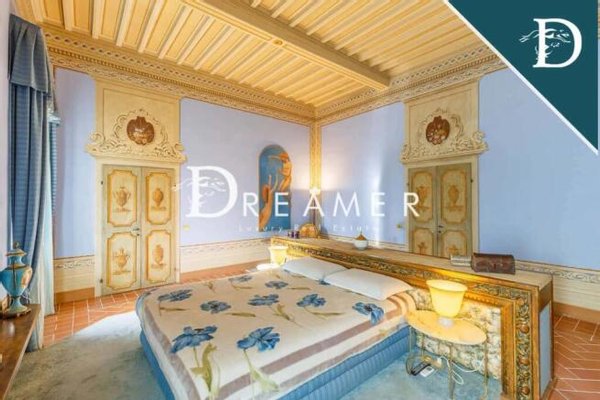 Luxury residence consisting of 3 villas with swimming pool and vineyard for sale on the hills of Florence, just 50 minutes from the historic city center. The entire property extends over an internal surface area of approximately 1600 square meters, with 12 bedrooms and 10 bathrooms, as well as a private garden of 23 hectares, 2 of which are vineyards.
