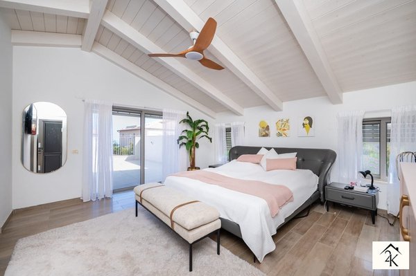 Eingebettet in einer ruhigen, baumgesäumten Straße in einem der begehrtesten Viertel von Zikhron Ya'akov, definiert dieses atemberaubende Haus mit 5 Schlafzimmern und 4 Badezimmern das elegante Wohnen neu. Hohe, beeindruckende Holzdecken schaffen ein