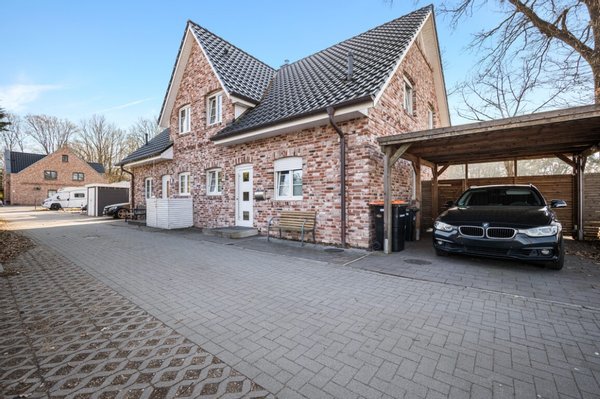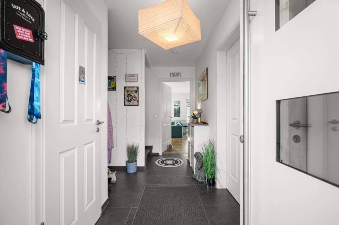 Dieses attraktive Einfamilienhaus wurde im Jahr 2019 ist in solider Massivbauweise als energieeffizientes KfW-55-Haus in Henstedt-Ulzburg errichtet. Die Doppelhaushälfte überzeugt durch ein hochwertiges, modernes Design sowie eine Vielzahl durchdachter Ausstattungsdetails, die zeitgemäßen Wohnkomfort mit nachhaltiger Technik verbinden. Eine Solaranlage zur Warmwasserbereitung, Fußbodenheizung, kontrollierte Lüftungsanlage sowie dreifach verglaste Wärmeschutzfenster sorgen für ein angenehmes Raumklima und niedrige Energiekosten. Besonders hervorzuheben ist die hervorragende Vernetzung des Hauses: In zahlreichen Räumen sowie auf der Terrasse stehen LAN-Anschlüsse (Glasfaser WilhelmTel) zur Verfügung. Die Fußböden sind mit hochwertigem Laminat in Dielenoptik und Fliesen in anthrazit belegt.