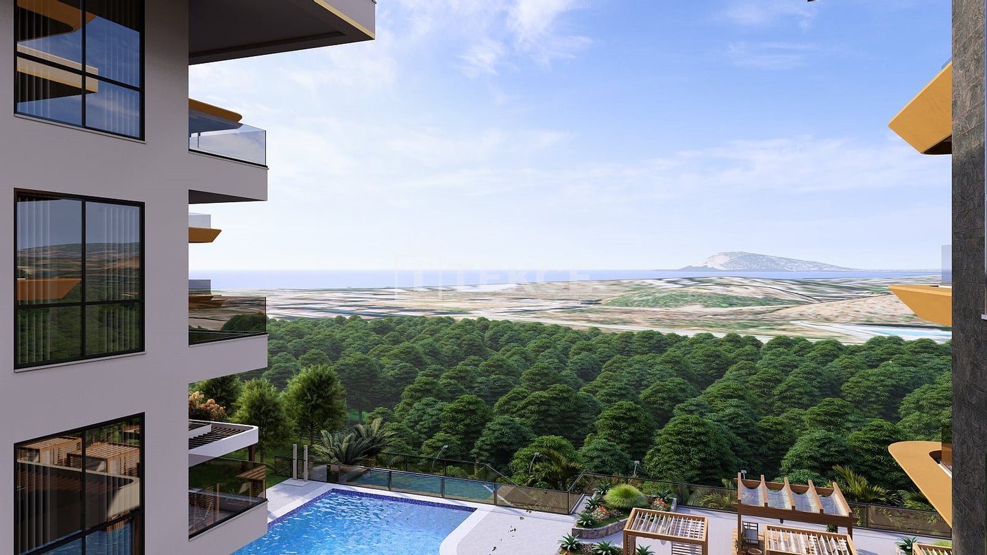 Wohnungen mit Panoramablick auf das Meer und die Stadt in einem Projekt mit vielen Annehmlichkeiten in Alanya Kestel & 13 Die stilvollen Wohnungen befinden sich in Kestel in Alanya. Kestel ist ein Entwicklungsgebiet mit verschiedenen
