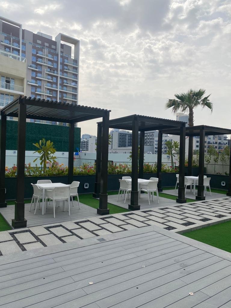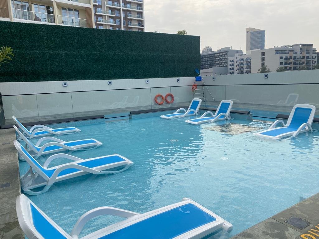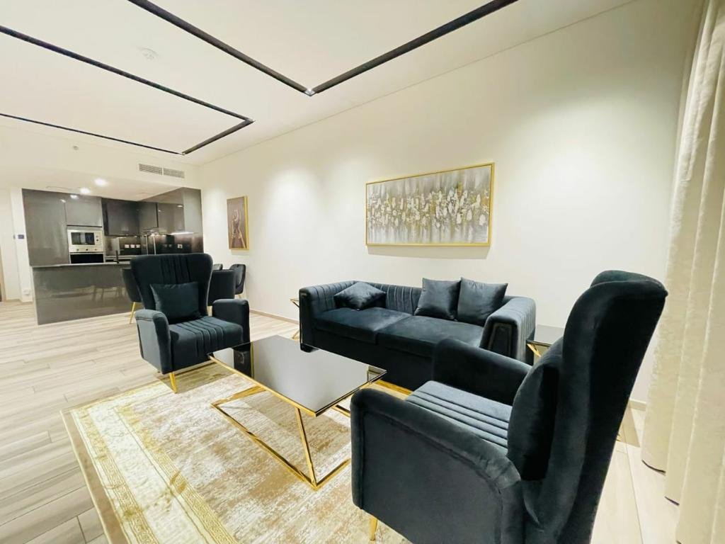 1-Zimmer-Wohnung zum Verkauf in Whitecliffs Residences auf den Dubai Islands, mit einem funktionalen Grundriss, der zum modernen urbanen Wohnen passt. Die Wohnung ist möbliert und verfügt über einen offenen Wohn- und Essbereich, eine moderne Küche