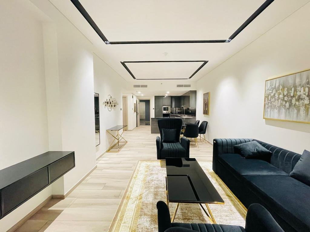 1-Zimmer-Wohnung zum Verkauf in Whitecliffs Residences auf den Dubai Islands, mit einem funktionalen Grundriss, der zum modernen urbanen Wohnen passt. Die Wohnung ist möbliert und verfügt über einen offenen Wohn- und Essbereich, eine moderne Küche und ein Hauptschlafzimmer mit Zugang zum Balkon und Stadtblick.