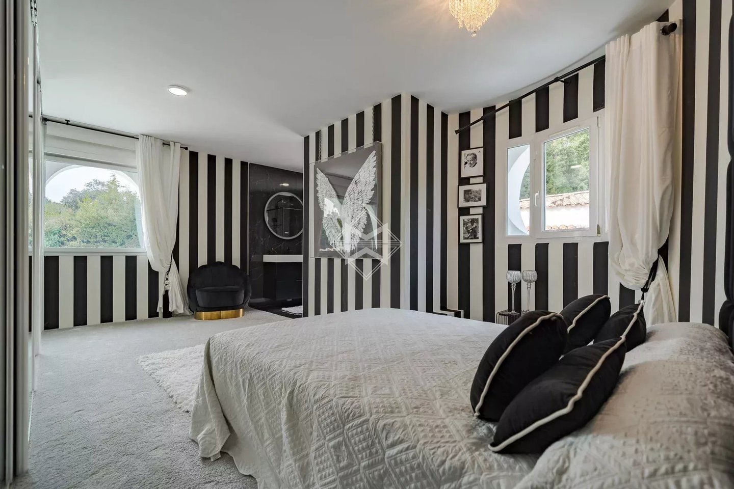 In einem der prestigeträchtigsten und sichersten Privatdomänen von Mougins mit 24-Stunden-Sicherheitsdienst verkörpert diese Immobilie eine einzigartige Vision des Lebensstils an der Côte d’Azur, zwischen skulpturaler Architektur, unberührter Natur und modernen Annehmlichkeiten.