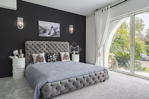 Idealerweise liegt die Villa nur 12 Minuten von Cannes und der Croisette entfernt, 4 Minuten vom Golf-Club Country Club, 5 Minuten von der Mougins School und in unmittelbarer Nähe zum historischen Dorf.