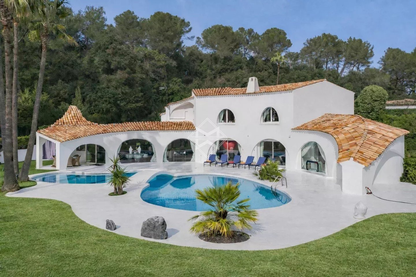 Nach der vollständigen Renovierung im Jahr 2025 profitiert die Villa von einer Südausrichtung und vollkommener Privatsphäre ohne vis-à-vis. Sie liegt auf einem herrlichen, flachen, ca. 3.280 m² großen Gartengrundstück, ergänzt durch einen organisch geformten Swimmingpool.