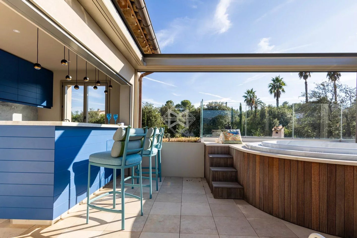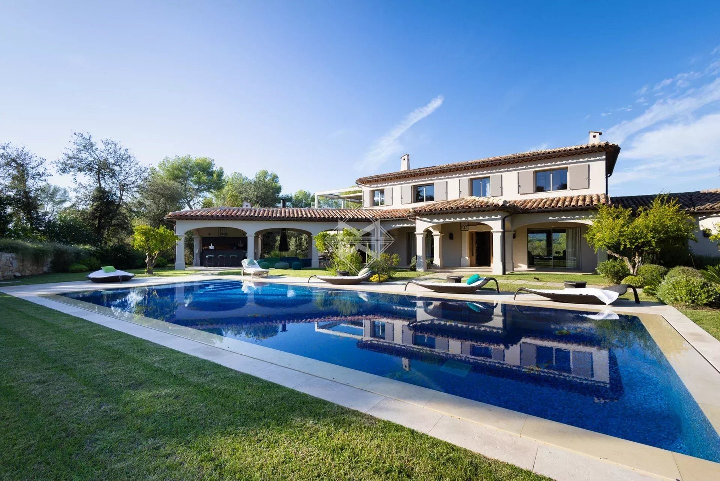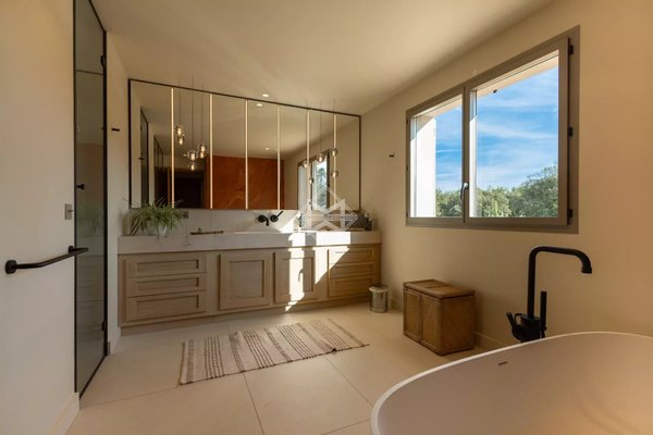 In der Nähe des Dorfes Valbonne gelegen und nur 30 Minuten vom internationalen Flughafen Nizza entfernt, besticht diese elegante Immobilie durch sorgfältige Architektur, großzügige Räume und eine privilegierte natürliche Umgebung, zwischen gestalteten Gärten und bewaldeten Flächen, die Privatsphäre und Gelassenheit bietet. Das Hauptgebäude bietet komplette Ausstattungen, die auf einen raffinierten Lebensstil ausgerichtet sind. Das Erdgeschoss öffnet sich zu einem einladenden Empfangsbereich, der zu prächtigen Empfangsbereichen führt, darunter ein Wohnzimmer mit Kamin, ein elegantes Bibliothekszimmer, eine schöne Landhausküche im chicen Stil und ein gemütliches Esszimmer. Eine große überdachte Terrasse mit Feuerstelle verlängert die Wohnbereiche harmonisch mit dem Poolbereich. Diese Ebene verfügt außerdem über 2 Suiten-Schlafzimmer, darunter ein Master-Schlafzimmer mit Ankleidezimmer und ein Büro, das als Schlafzimmer dienen kann. Im Obergeschoss befinden sich zwei weitere schöne Suiten-Schlafzimmer, die zu einer angenehmen Terrasse mit Außenküche und Jacuzzi-Bereich führen und dazu einladen, ganzjährig besondere Momente zu genießen. Das Erdgeschoss beherbergt eine großzügige Garage sowie verschiedene Technikräume, eine Heizanlage und eine Waschküche. Ein wahrlich Wellness- und Freizeitbereich ergänzt diese Ebene mit einem Wohnzimmer, einem Weinkeller, einem Fitnessraum und einem Saunabereich mit Dusche, Sanitäranlagen und Staumöglichkeiten, was eine entspannende Privatsphäre ermöglicht. Ein Aufzug verbindet die verschiedenen Ebenen. Auf ca. 13.500 m² Grundstück, gemischt aus Ziergärten und Waldgebieten, vereint diese Immobilie Charme, Komfort und Lebensart in einer natürlichen, geschützten Umgebung in einer kleinen privaten Anlage, die Ruhe und Diskretion garantiert.