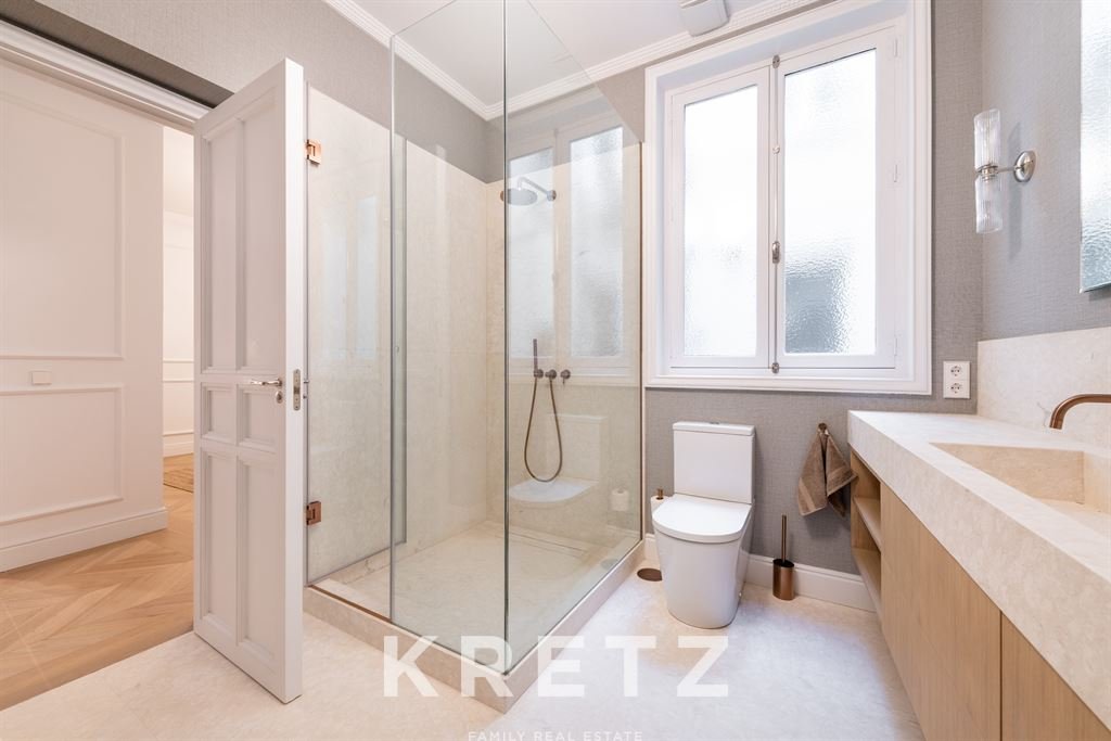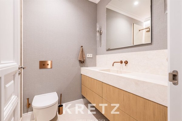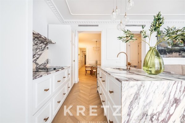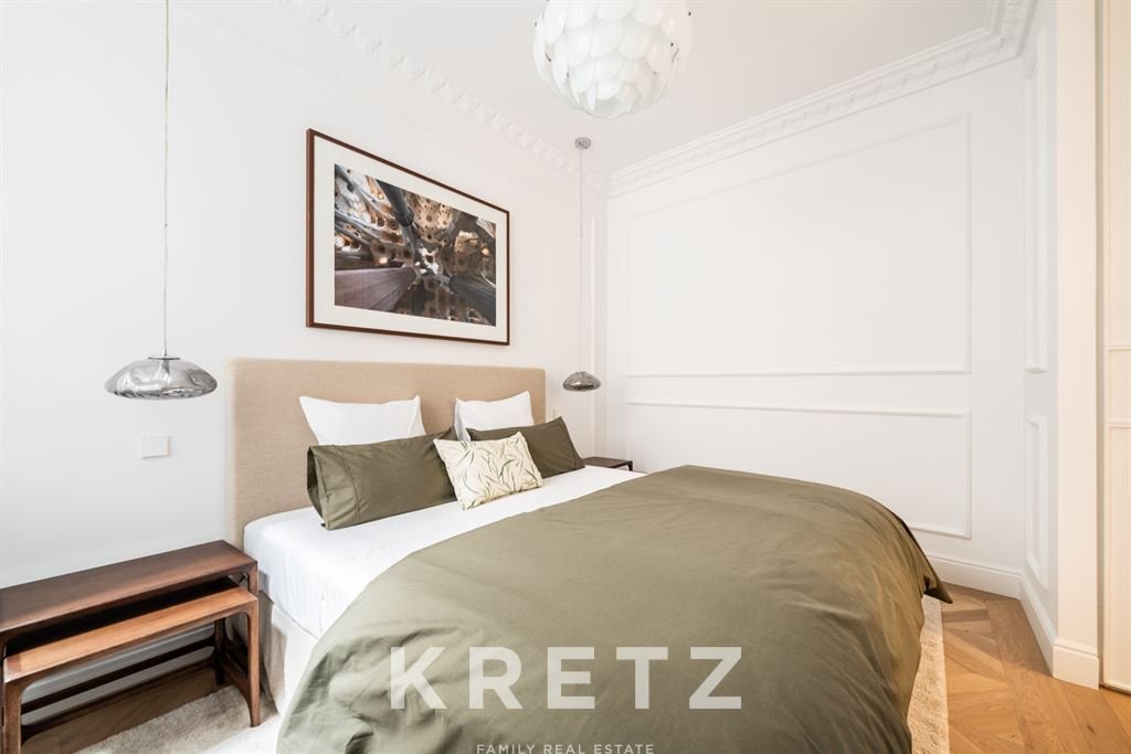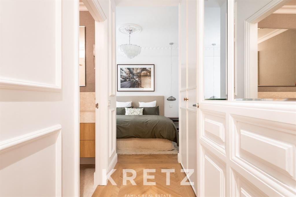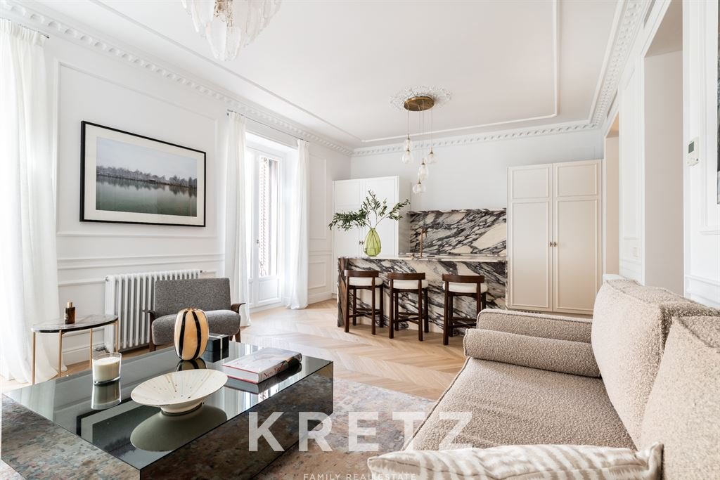 Behind an elegant period façade, the interior reveals a high-quality renovation that respects the building’s original character while reinterpreting it through a contemporary lens of luxury. Carefully detailed high ceilings and abundant natural light define a serene and sophisticated atmosphere—rarely found in the very centre of the city.