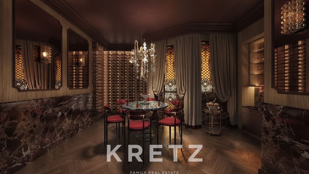 Weinkeller: Ein temperaturkontrollierter Raum für Verkostungen und zur sicheren Aufbewahrung der privaten Weinsammlungen der Bewohner.