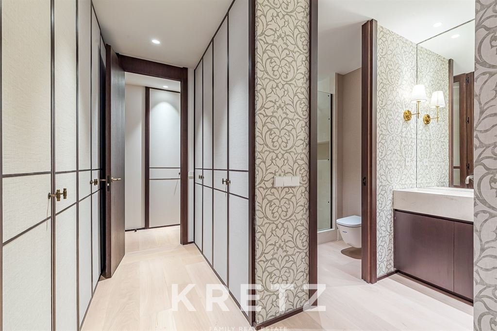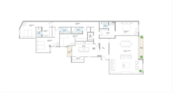 Ideal tanto para famílias quanto para empresas, o imóvel conta com quatro quartos, todos com banheiros e armários privativos, além de um lavabo social. A varanda externa é perfeita para o café da manhã. O apartamento inclui uma vaga de estacionamento e o edifício possui porteiro.