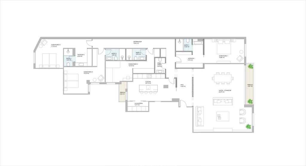 Descubra um apartamento moderno e espaçoso de 285 m², totalmente reformado e mobiliado, localizado em Núñez de Balboa, uma das melhores ruas de Recoletos por sua privacidade, tranquilidade e segurança. A residência possui tetos altos, pisos de madeira clara e um design de conceito aberto nas áreas sociais, proporcionando grande luminosidade e sensação de amplitude. A cozinha oferece muito espaço de armazenamento, uma grande ilha para preparo e cocção, duas pias e eletrodomésticos de alto padrão embutidos.