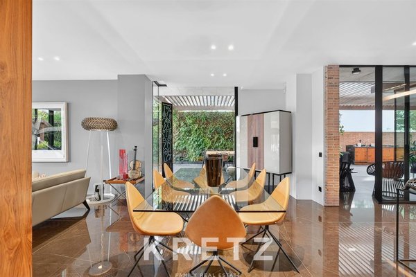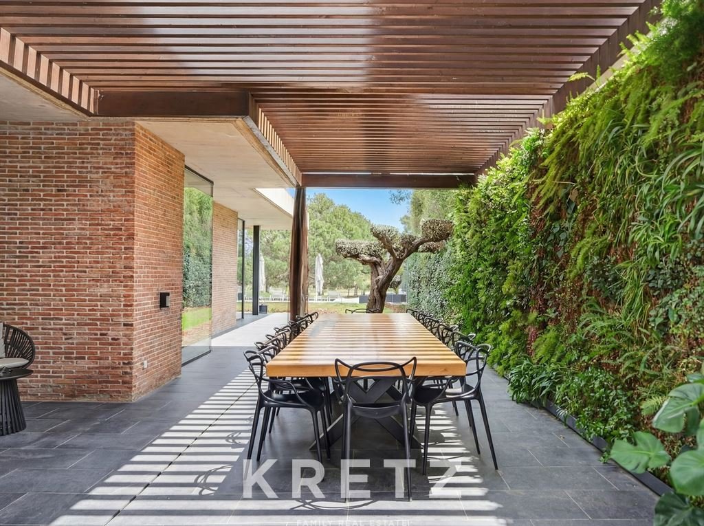 - Hauptetage mit großem Wohn-Esszimmer und Zugang sowohl zum Garten als auch zum überdachten Grillbereich, der durch riesige Sicherheitsfenster mit einem wunderschönen vertikalen Garten geschmückt ist. Die Küche mit einer großen zentralen Kochinsel ist mit hochwertigen Geräten ausgestattet und kann auf Wunsch vom Wohnzimmer getrennt werden. Drei Schlafzimmer mit eigenem Bad und ein Gäste-WC vervollständigen diese Etage.