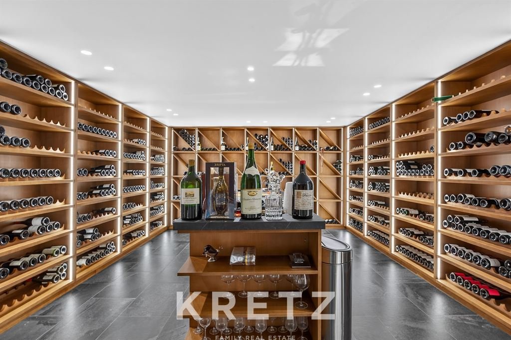 Im Untergeschoss befinden sich zwei weitere geräumige Schlafzimmer mit eigenem Bad, ein großzügiger Fitnessraum und ein beeindruckender Weinkeller mit Platz für mehr als 2500 Flaschen sowie eine Waschküche und eine Garage.