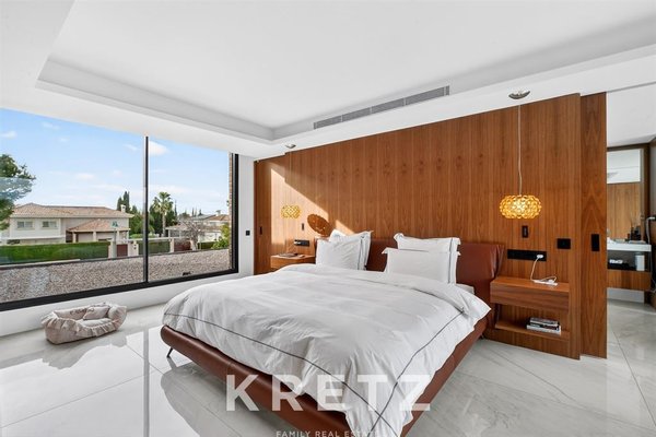 - Die erste Etage ist eine echte private Oase, da sie vollständig dem Hauptschlafzimmer gewidmet ist. Es gibt zwei Ankleidezimmer, separate Badezimmer und einen spektakulären Blick auf den Golfplatz von der privaten Terrasse aus.