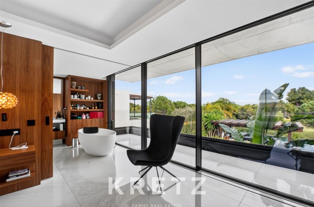 - Die erste Etage ist eine echte private Oase, da sie vollständig dem Hauptschlafzimmer gewidmet ist. Es gibt zwei Ankleidezimmer, separate Badezimmer und einen spektakulären Blick auf den Golfplatz von der privaten Terrasse aus.
