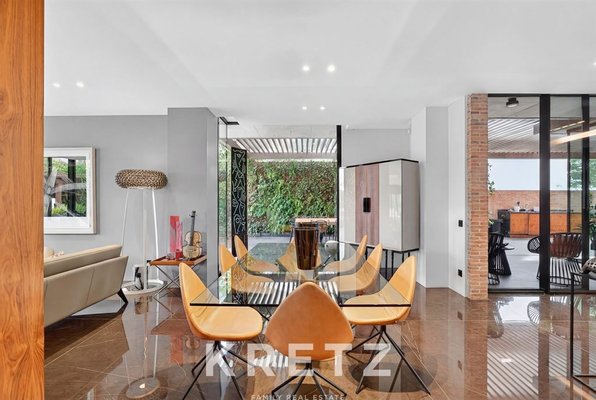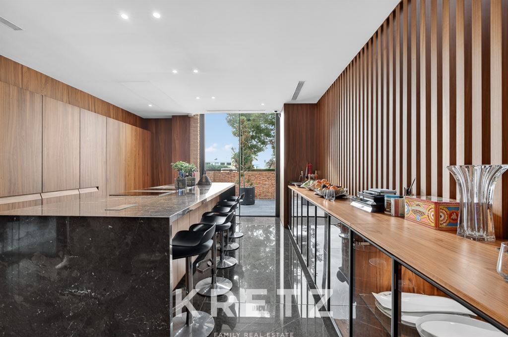 - Hauptetage mit großem Wohn-Esszimmer und Zugang sowohl zum Garten als auch zum überdachten Grillbereich, der durch riesige Sicherheitsfenster mit einem wunderschönen vertikalen Garten geschmückt ist. Die Küche mit einer großen zentralen Kochinsel ist mit hochwertigen Geräten ausgestattet und kann auf Wunsch vom Wohnzimmer getrennt werden. Drei Schlafzimmer mit eigenem Bad und ein Gäste-WC vervollständigen diese Etage.
