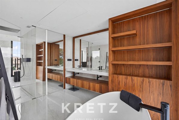 Kretz Family bietet diese spektakuläre Designer-Villa zum Verkauf an, die 2020 erbaut und vom Architekturbüro Perretta entworfen wurde.