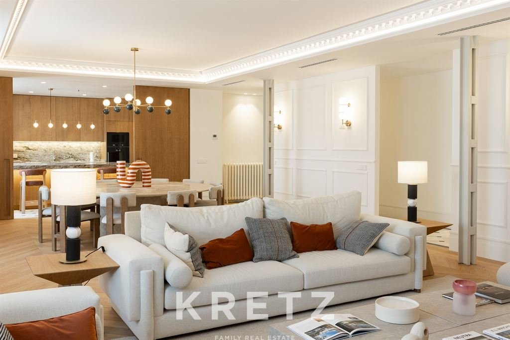 Live on the prestigious Calle Ayala in this 487 m² residence, the perfect harmony between classic architecture and contemporary design. Just a few steps from El Retiro Park, luxury boutiques, and fine dining.