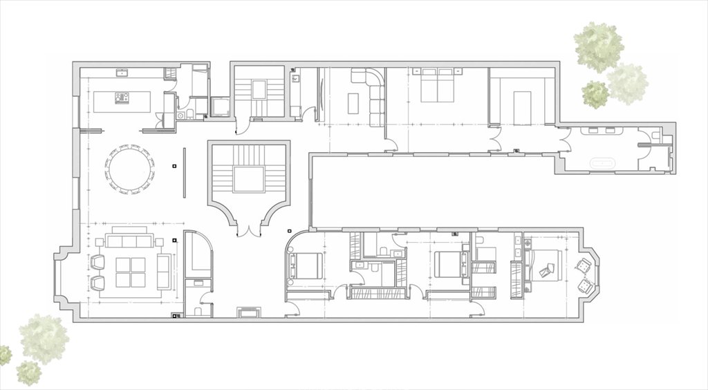 • Herringbone oak floors, Axor fixtures, full central heating, and air conditioning.