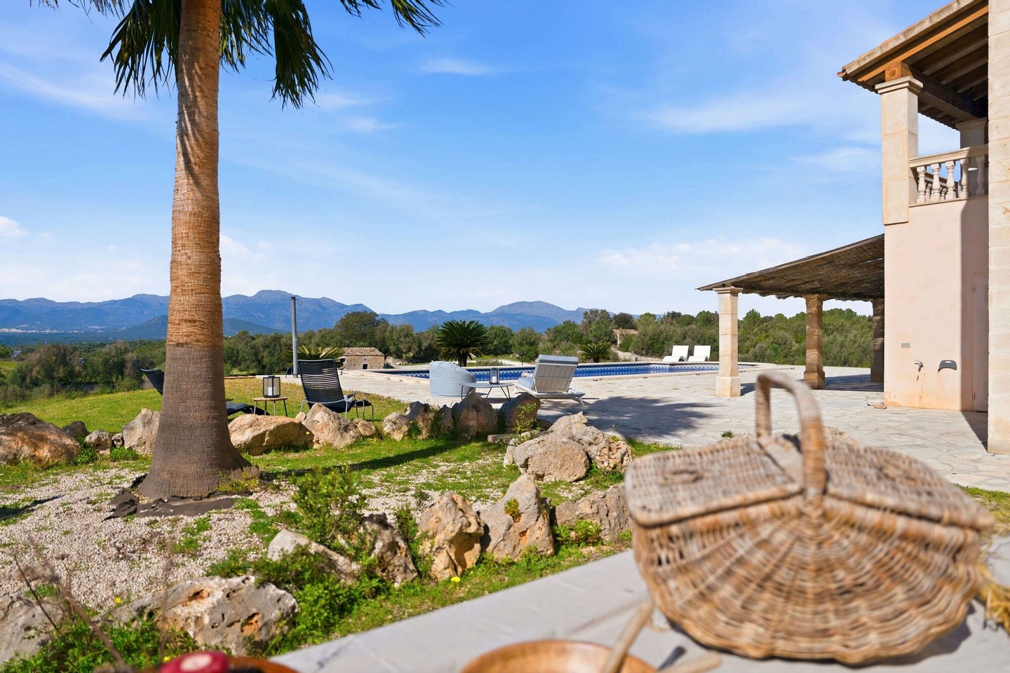 Das Anwesen liegt eingebettet in die sanfte Hügellandschaft Mallorcas, nur wenige Minuten vom charmanten Dorf Llubí entfernt. Llubí ist ein ursprüngliches mallorquinisches Dorf mit traditioneller Architektur, Mandel- und Feigenhainen, kleinen Cafés,