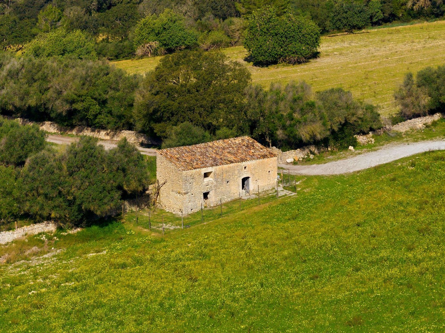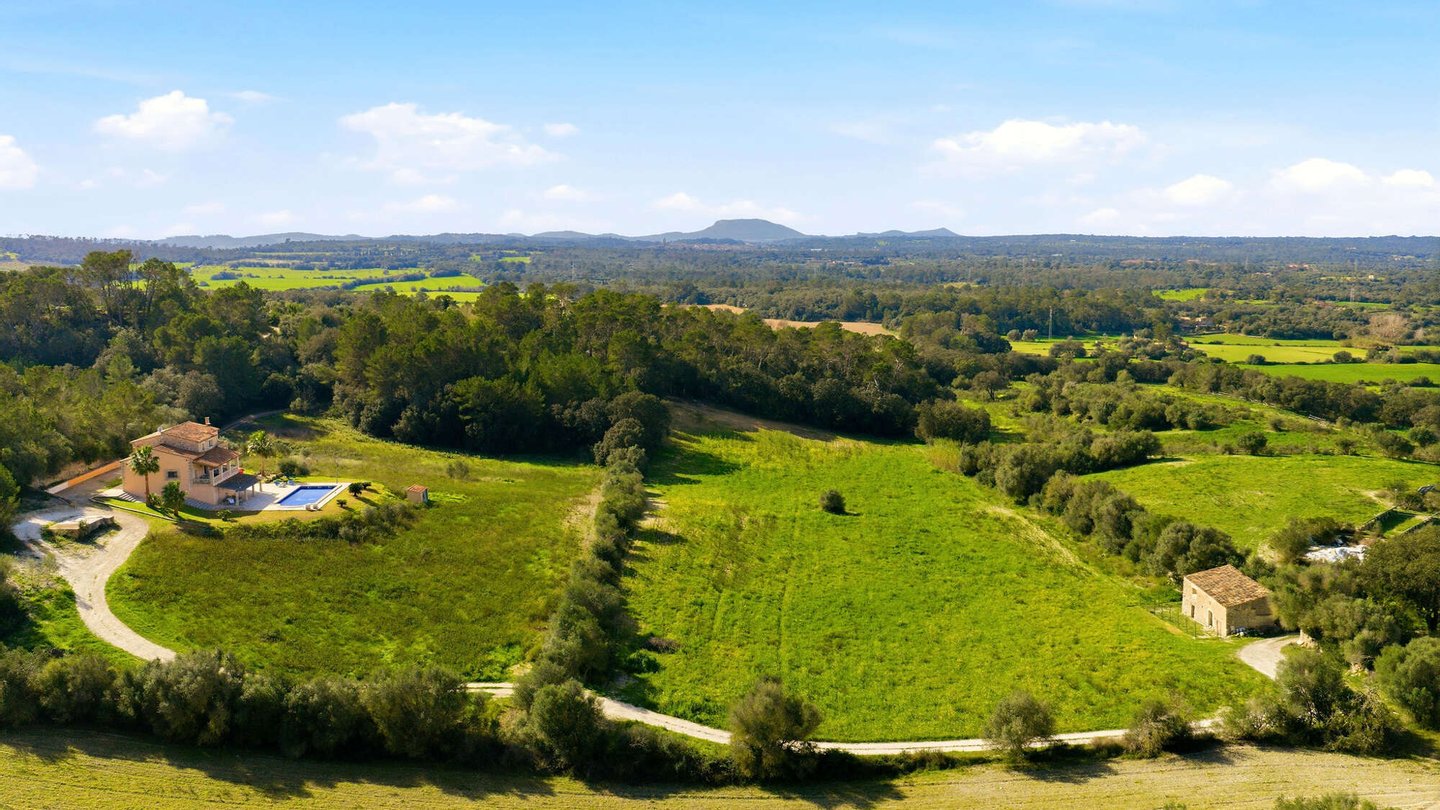 Das Anwesen liegt eingebettet in die sanfte Hügellandschaft Mallorcas, nur wenige Minuten vom charmanten Dorf Llubí entfernt. Llubí ist ein ursprüngliches mallorquinisches Dorf mit traditioneller Architektur, Mandel- und Feigenhainen, kleinen Cafés, lokalen Geschäften und typischen Restaurants, die authentische Küche servieren. Hier trifft Ruhe auf echte Insellebensart – perfekt für ein Rückzugsrefugium mit privatem Charakter.