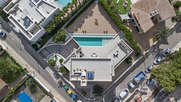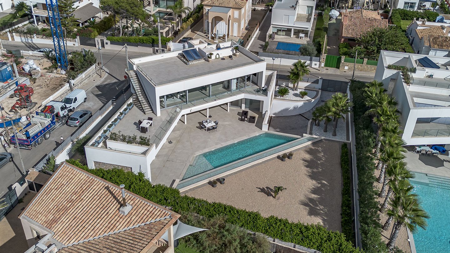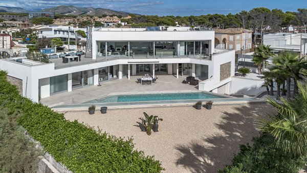 Meerblick & direkter am Meer, großer Pool mit Sonnenterrasse, überdachte Terrassenbereiche, Aufzug über alle Ebenen, Bodentiefe Fensterfronten, Domotik-System (Smart Home) mit Elektrische Jalousien, LED-Beleuchtung im Innen- und Außenbereich und ...mehr lesen