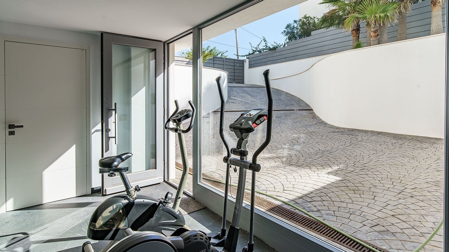 Der luxuriöse Spa-Bereich mit Sauna und Fitnesszone lädt zum Entspannen ein. Zudem befinden sich hier eine Waschküche, und die Garage mit direktem Zugang ins Haus.