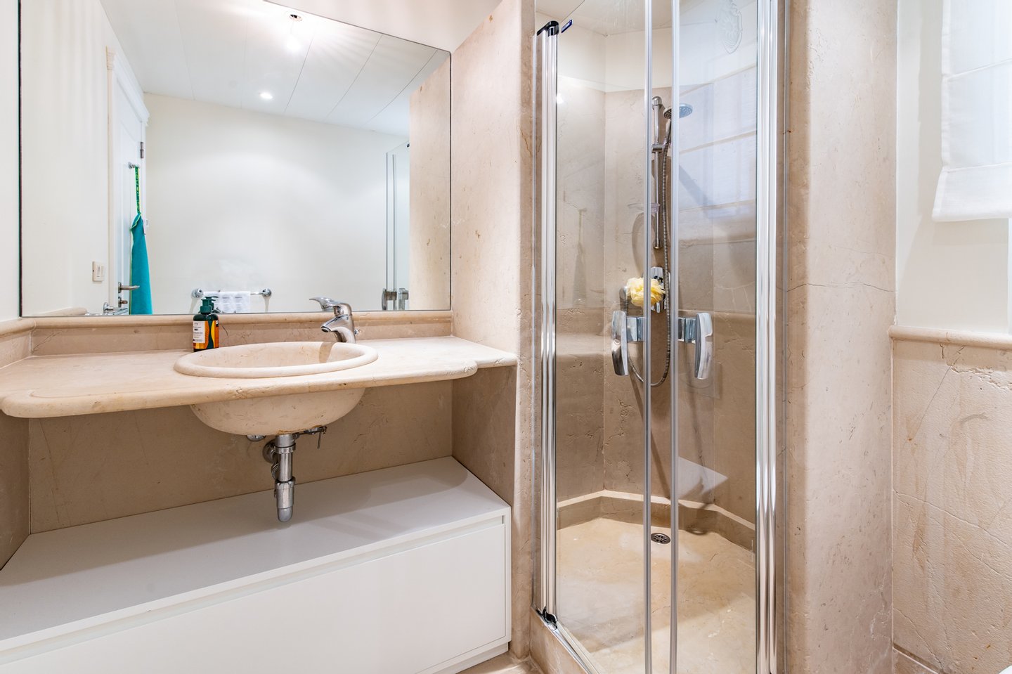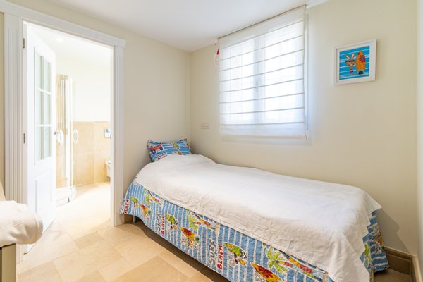Das ca. 166 m2 (WOhnfläche) großen Garten- Apartment, verfügen über zwei Hauptschlafzimmer mit Bad en Suite mit Dreiecksbadewanne und Duschtempel sowie zwei weiteres Schlafzimmer mit eigener Terrasse und ebenfalls Badezimmer en Suite sowie ein Gäste- WC. Die Böden sind aus Marmor Antiguar mit Fußbodenheizung im gesamten Apartment. Die Küche ist offen gestaltet und mit hochwertigen Einbaugerät ausgestattet. Sowohl vom Wohnzimmer als auch von drei der vier Schlafzimmern genießen Sie herrliche Meerblicke und gelangen auf die verschiedenen Terrassen, von wo aus Sie weiter in den Garten mit Whirlpool und herausragenden Meerblick gehen.