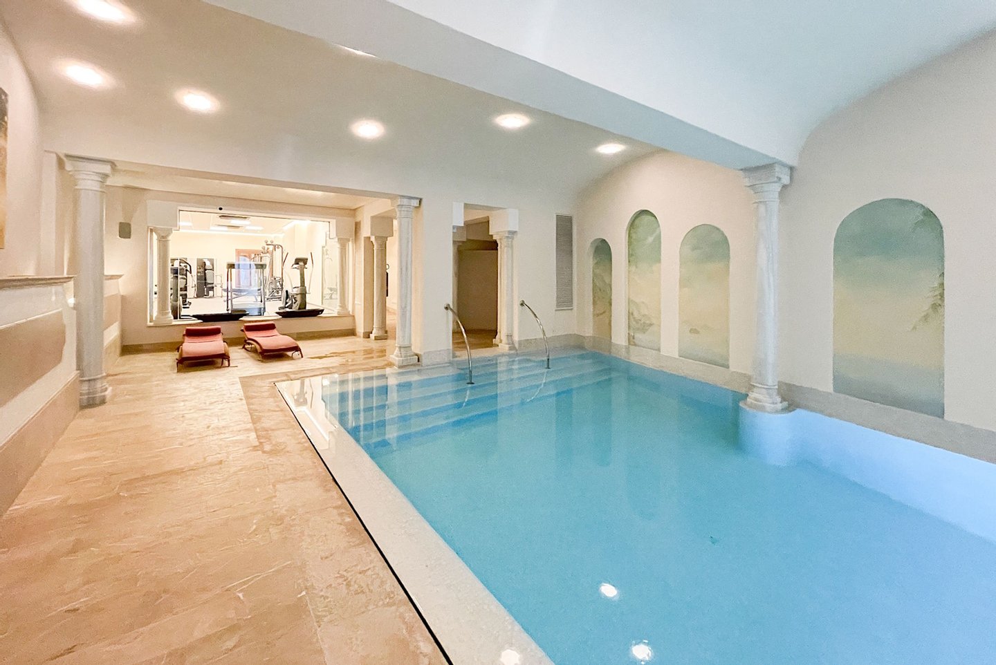 Dieses mediterrane Garten-Apartment befindet sich in einer der exklusivsten Anlagen in Mallorca. Die Anlage zeichnet sich aus durch einen 5 Sterne Service mit Rezeption, Spa mit Sauna, Dampfbad, Fitness, Indoor- Pool, Whirlpool sowie einer Bar,