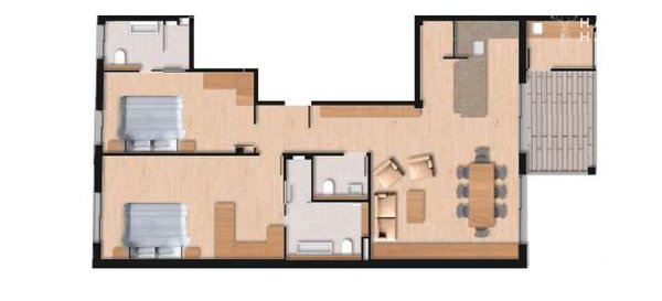 Die modern geschnittene Wohnung verfügt über insgesamt 3 Zimmer, davon 2 Schlafzimmer und 2 Badezimmer, beide ensuite und einem zusätzliches Gäste - WC.