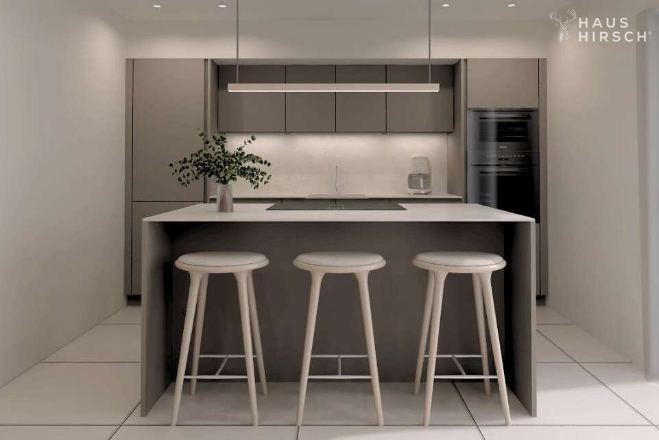 Die gehobene Ausstattung der Wohnung lässt keine Wünsche offen. Ein Highlight ist der offene Wohn- und Essbereich mit einer komplett ausgestatteten Einbauküche. Von hier aus gelangen Sie auch auf den Balkon, auf dem Sie die Sonne und die Ruhe genießen können. Die Klimaanlage sorgt auch an heißen Tagen für ein angenehmes Raumklima.