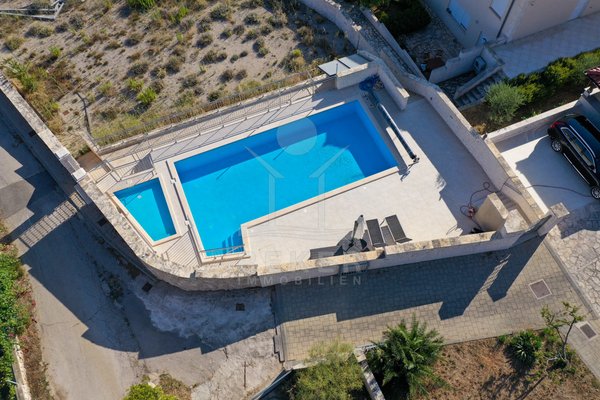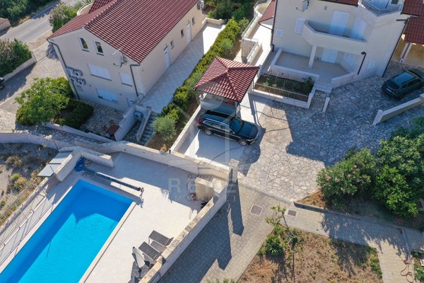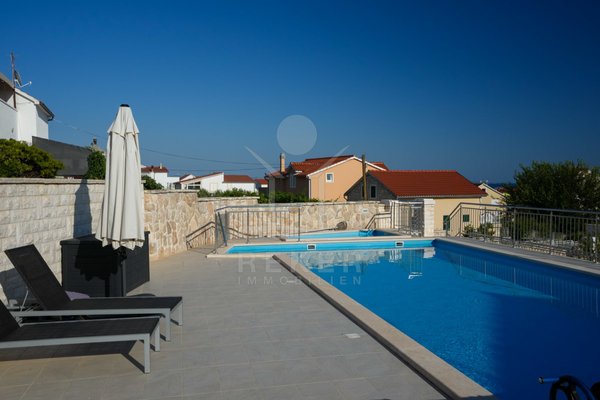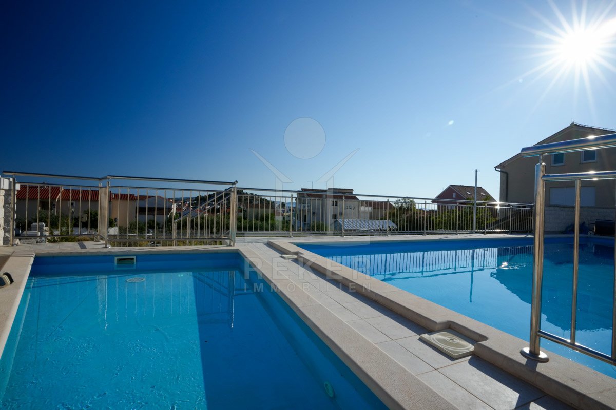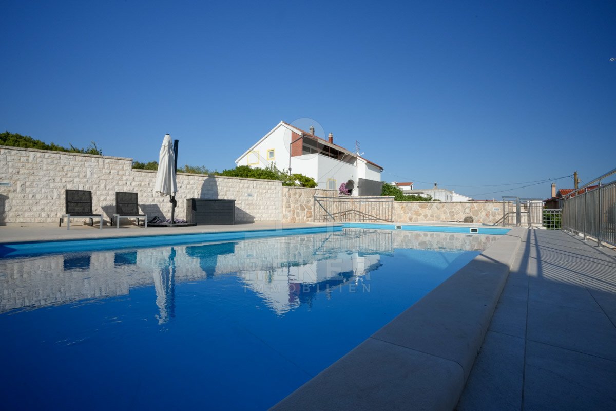 Pool und Kinderbecken: Großzügige Familienvilla in Tribunj mit drei Wohneinheiten