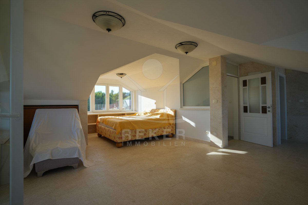 Diese großzügige Villa in Tribunj spricht Käufer an, die Ruhe schätzen und kurze Wege zum Meer genießen möchten. Der Strand Bristak und das Ortszentrum sind jeweils nur etwa 600 m entfernt. Restaurants, Cafés und Einkaufsmöglichkeiten erreichen Sie bequem zu Fuß. So verbindet der Standort entspannte Wohnatmosphäre mit dem Leben eines Küstenortes.