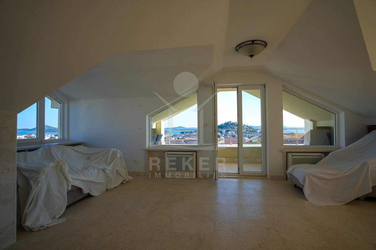 Diese großzügige Villa in Tribunj spricht Käufer an, die Ruhe schätzen und kurze Wege zum Meer genießen möchten. Der Strand Bristak und das Ortszentrum sind jeweils nur etwa 600 m entfernt. Restaurants, Cafés und Einkaufsmöglichkeiten erreichen Sie