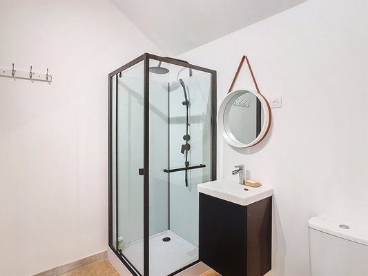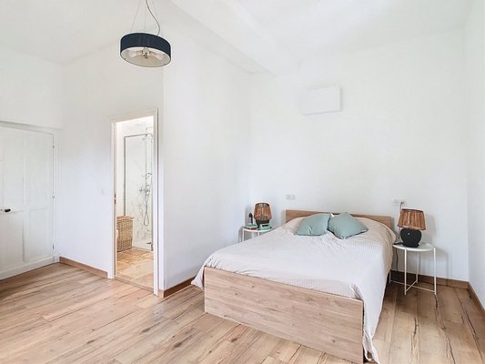 Gelegen in Beynac-et-Cazenac, eines der schönsten Dörfer der Dordogne, nur 10 km von Sarlat-la-Canéda entfernt, genießt dieses Herrenhaus eine ruhige Lage und liegt fußläufig zum Fluss Dordogne. Vollständig renoviert und über drei Etagen verteilt, besteht das Haus im Erdgeschoss aus einem geräumigen Esszimmer mit offener, vollständig ausgestatteter Küche, einem Wohnzimmer mit Kamin, einem ersten Schlafzimmer mit eigenem Duschbad und Doppelwaschtisch, einem Abstellraum und einer separaten Toilette. Der Wohnbereich öffnet sich durch mehrere Terrassentüren nach draußen und schafft so eine schöne Verbindung zum Garten. Eine originale massive Holztreppe, zentral im Wohnbereich gelegen, führt zu zwei weiteren Schlafzimmern, jeweils mit eigenem Duschbad, sowie zu einem Büro. Die zweite Etage umfasst zwei weitere große Schlafzimmer und ein Badezimmer. Authentische Elemente wie die sichtbaren Balken und der Cantou (traditioneller Open-Haard) in der Küche sind erhalten geblieben und sorgen für eine harmonische Balance zwischen historischem Charme und modernem Komfort. Das Haus ist an Kanalisation und Glasfaser angeschlossen, mit Doppelverglasung ausgestattet und wird vollständig durch eine vor einem Jahr installierte Wärmepumpe beheizt. Das Grundstück von 755 m², südlich ausgerichtet, vervollständigt dieses Anwesen und sorgt für Licht und Ruhe. Das Haus eignet sich ideal als Familienresidenz oder als Investition zur Vermietung.