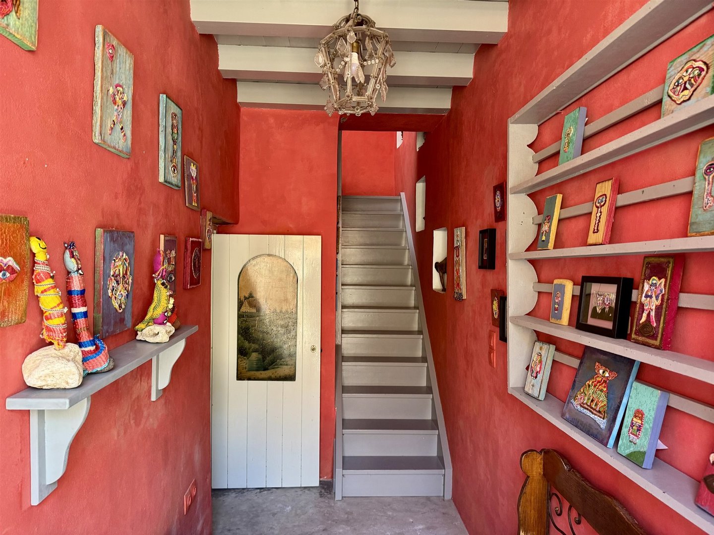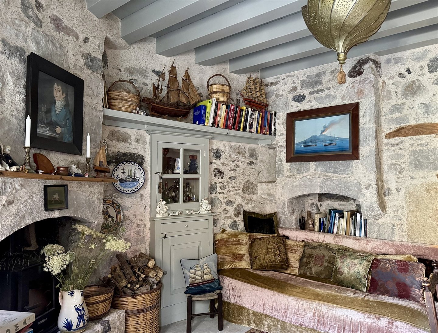 Im Erdgeschoss gibt es eine Diele, ein geräumiges Wohnzimmer – Esszimmer mit Kamin und traditionellemBackofen, Küche, 1 Schlafzimmer, 1 Badezimmer sowie eine Veranda mit traditionellem Brunnen.
